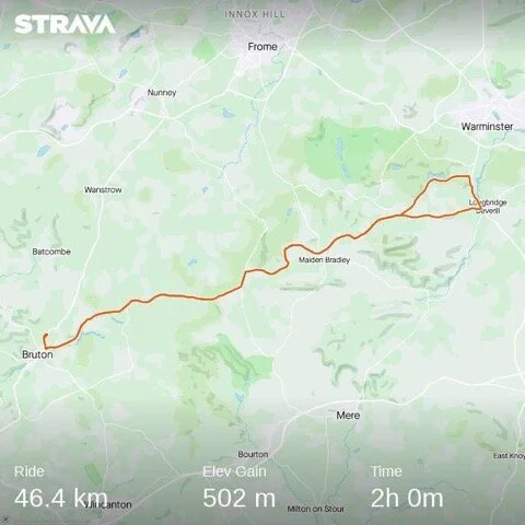An obvious route but a good one for newish cyclists - a challenging climb at the outset up Druley Hill but followed by an easy route through Maiden Bradley to Longbridge Deverill returning via Shearwater.