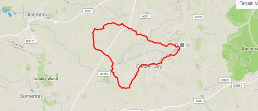 Description: Go out of Bruton via Wyke, nice slow climb up to the top of Wyke then you are down into the Somerset levels. Out through Ditcheat then take a challenge up Ditcheat hill to see the great views over the levels. Turning south to Parbrook then head to Castle Cary after Lovington and North Barrow. Taking the back lanes from Cary back home to Bruton.